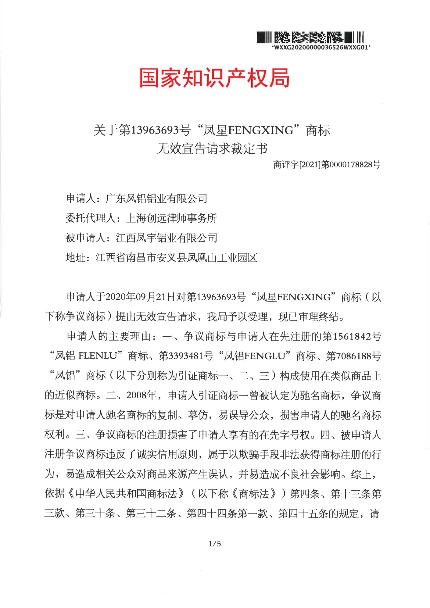 南通辉知队 | 国家知识产权局:“凤星”商标无效