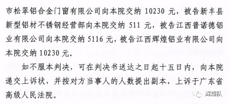 南通凤铝系列维权案:诉辉煌公司等四被告,法院判赔250余万